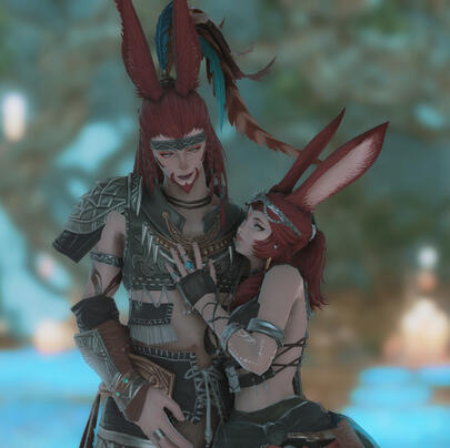 Ala is born special. Yes other Viera uses magic, but his magic is a little more dangerous. Only one is birthed every 100 years or so. Ala somehow got his fathers ability, and was getting training from the elder away from other male viera.He was kidnapped by a hooded figure and popped up in Ishgard. New World; New town. An elezen merchant found him, and made him a butler.Eventually the Elezen fell in love with Ala, at the age of eight teen, the Elezen asked Ala for his hand in marriage. Ala said yes, and was happy.Sadly the Elezen was failing gil wise. He chose gil over love. He had to marry a rich woman to keep his house and business. He broke it off with Ala, which broke him. The woman ended up keeping Ala around her, knowing their past.She would abuse him mentally and would taunt him. He wouldn't show any emotions around her, if he had any feeling at all.On the wedding day, the Elezen lied about cancelling the marriage, which broke Ala completely and drove him mad. He snapped right at the kiss, and killed everyone but the elezen male. He ran off, escaped, and is now trying to take care of himself, trying to get his good magic back. His magic did turn dark, and is slowly consuming him.